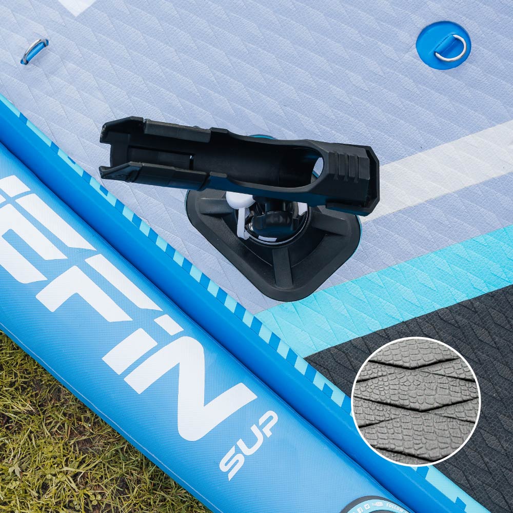 A unique tri-chamber inflation system, extra-wide deck pad and stabilising side rails provide a super stable casting platform for anglers. Thoughtful designs such as the two fishing rod mounts and accompanying holders make this board a fisher's best friend. The deck also offers ample room for gear: warm clothing to your favourite lure. A superb board for fishing adventures. Try it and you'll be hooked.
